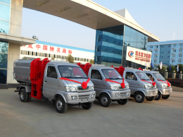福田小卡之星3方挂桶式垃圾车价格,程力威牌福田小卡之星3方挂桶式垃圾车图片,垃圾车厂家,福田小卡之星3方挂桶式垃圾车(CLW5040ZZZB5)底盘型号BJ1046V9JB5-F1排放标准GB17691-2005国ⅤGB3847-2005